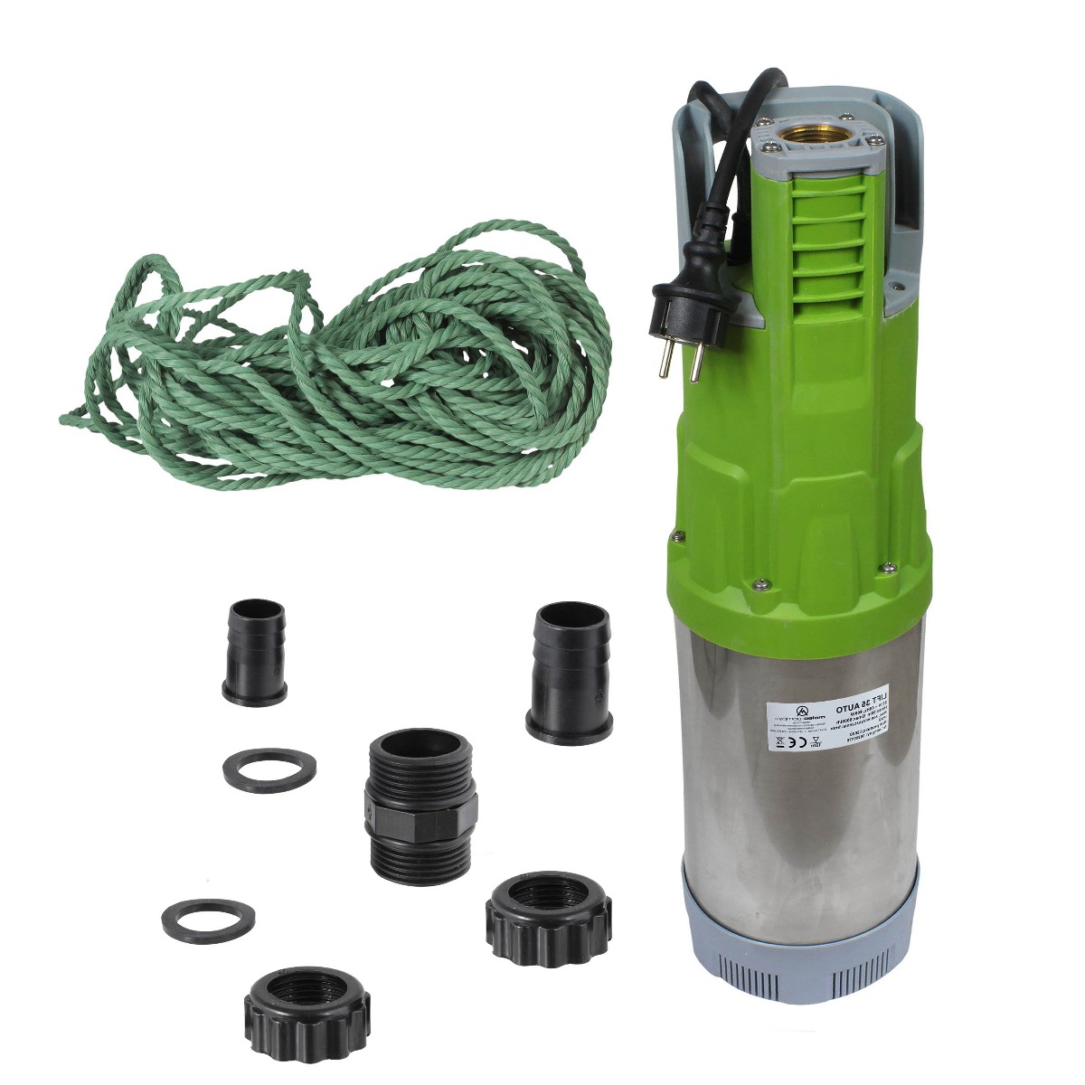 Nie są wymagane żadne dodatkowe zabezpieczenia, sterowniki itp. Pompę wystarczy podwiesić w studni czy umiejscowić w innym zbiorniku wodnym i podłączyć przewód zasilający. Przewód standardowo posiada długość 10m i jest zakończony wtyczką na 230V.